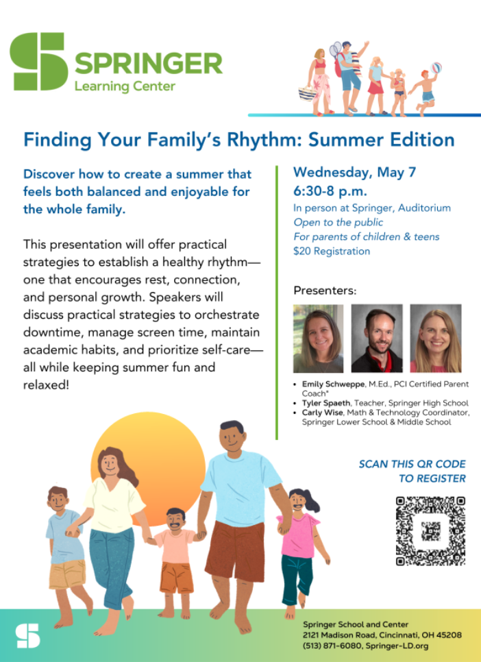 Join us on May 7 for practical tips on managing downtime, screen time, and academic habits—plus simple ways to keep your family connected and recharged. We’d love to see you there!